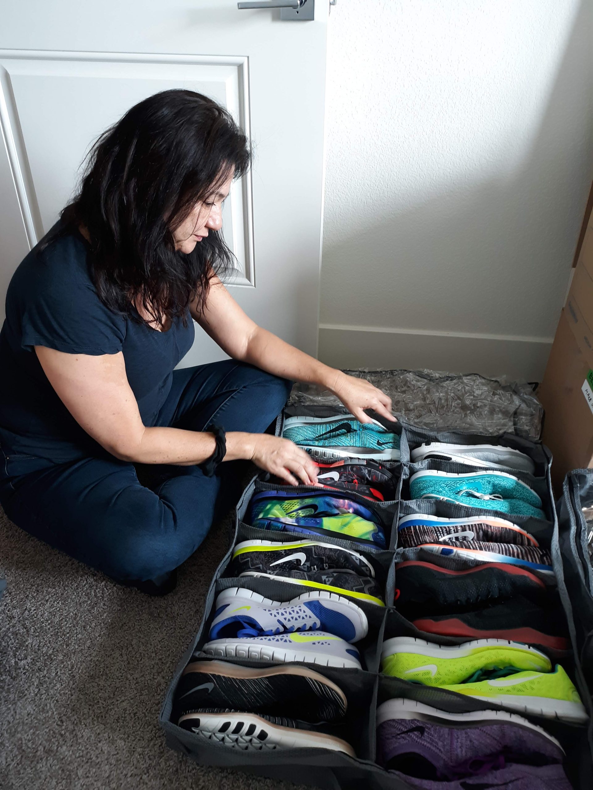 - Use an under-bed shoe organizer that zips closed and is easy to quickly slide out to grab what you need.